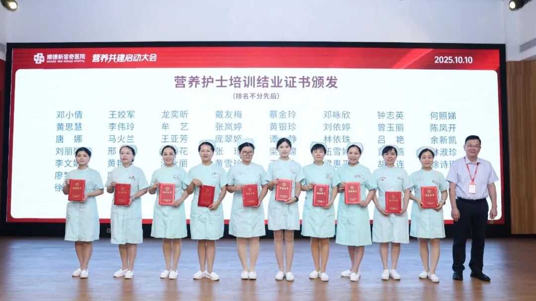 启动仪式后,大会进入了庄重的证书颁发环节,是对院内专业人才的表彰与鼓励。在证书颁发环节,一批顺利完成专业培训、并获得中国抗癌协会肿瘤营养专业委员会认证的护士代表们光荣上台,李子庆院长为她们颁发了“营养护士培训结业证书”。这一仪式不仅是对护理团队专业能力的充分肯定,更是我院护理队伍走向专业化、精细化的重要标志。