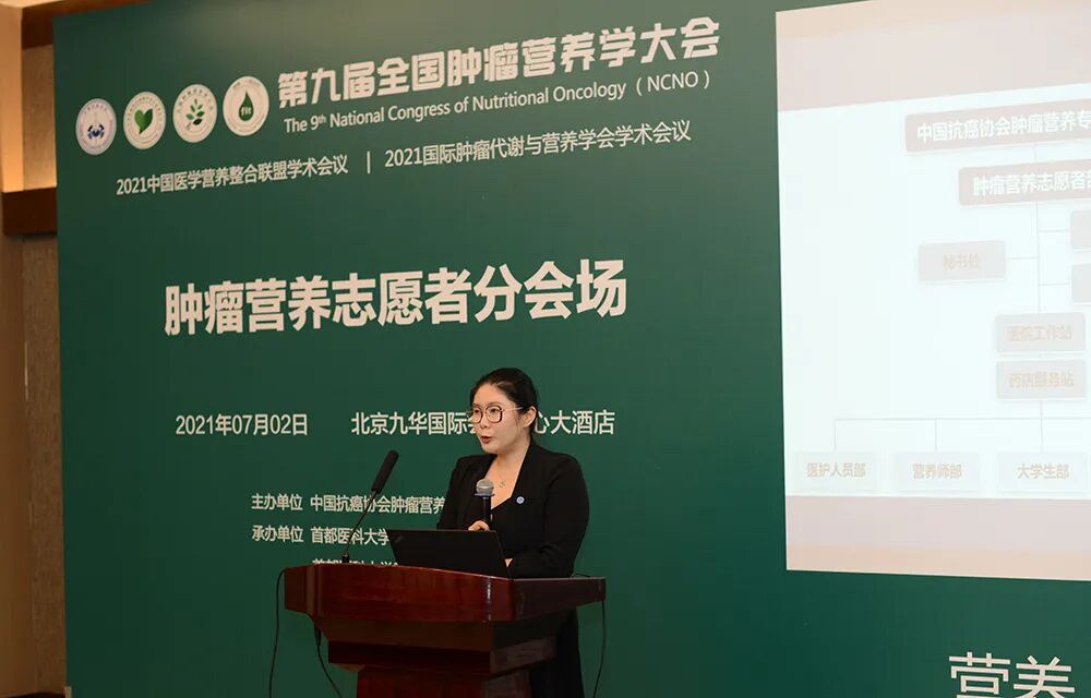 会议伊始,肿瘤营养志愿者部秘书长贾儒女士汇报分享志愿者部的工作成绩与近期重要工作项目规划。