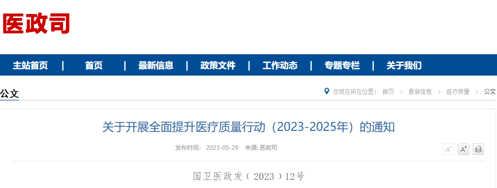 为深入推进健康中国建设,进一步深化医药卫生体制改革,全面提升医疗质量安全水平,建设中国特色优质高效的医疗卫生服务体系,保障人民群众健康权益,5月29日,国家卫生健康委、国家中医药局联合发布《关于开展全面提升医疗质量行动(2023-202…