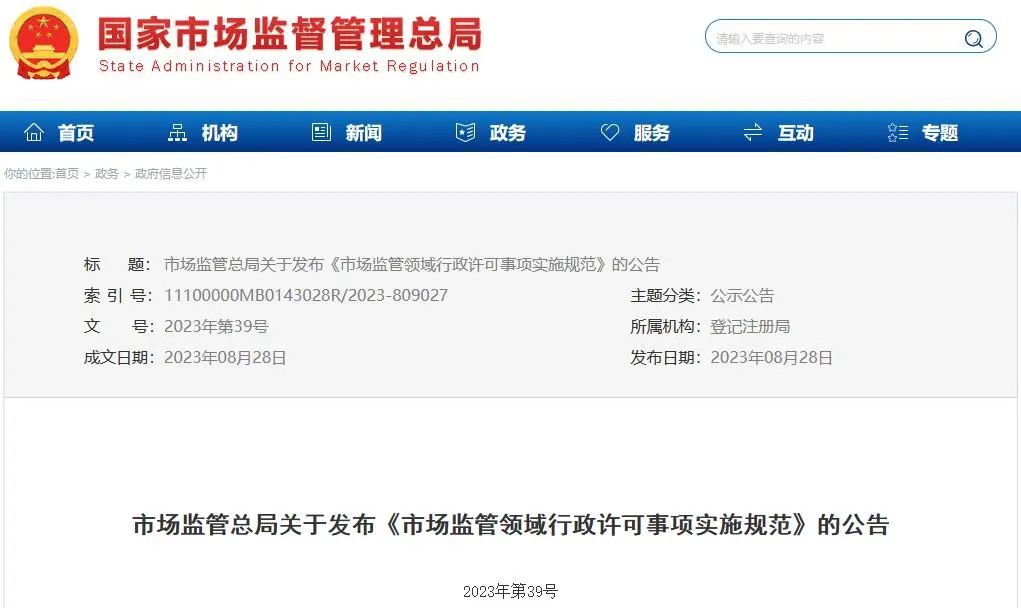 为积极建设全国统一大市场,持续优化营商环境,深入推进行政许可标准化、规范化、便利化,不断提高审批效率和监管效能,促进经济社会高质量发展。近日,市场监管总局制定出台《市场监管领域行政许可事项实施规范》(以下简称《实施规范》)。     《…