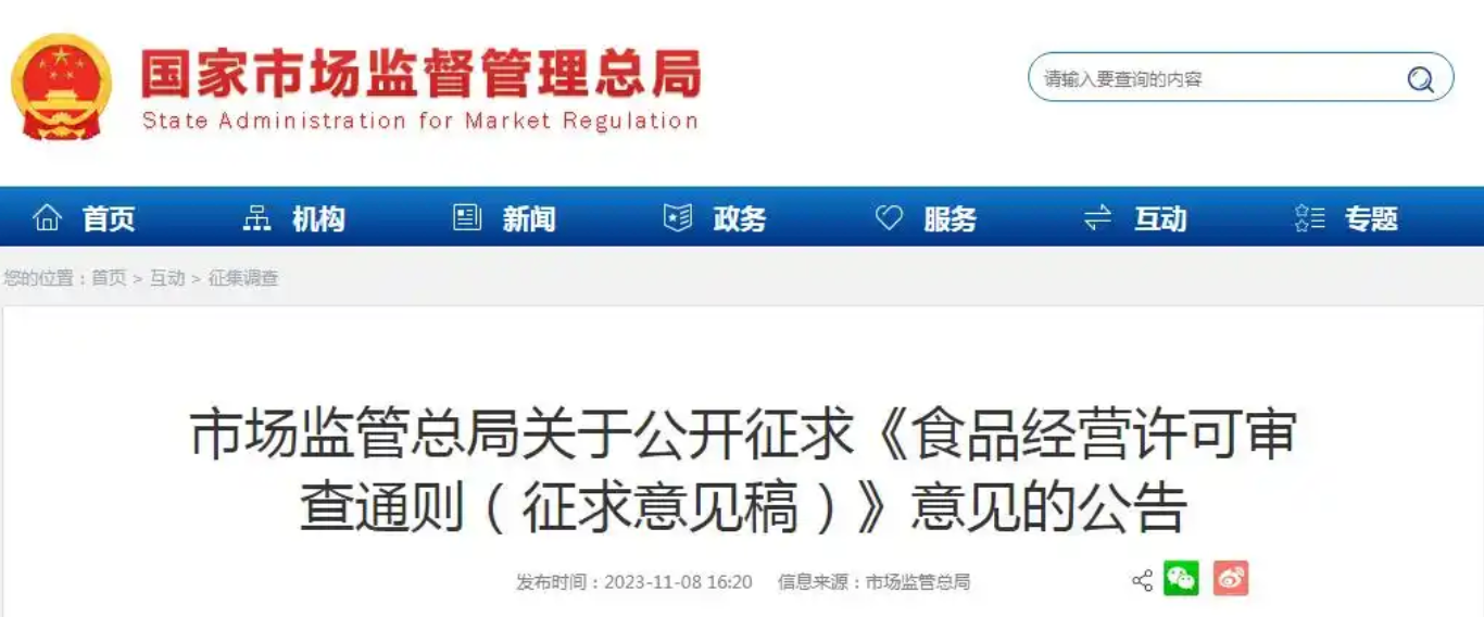 为保障《食品经营许可和备案管理办法》顺利贯彻实施,指导各地规范开展食品经营许可活动,市场监管总局对《食品经营许可审查通则(试行)》(食药监食监二〔2015〕228号)进行了修订,形成了《食品经营许可审查通则(征求意见稿)》,现向社会公开…