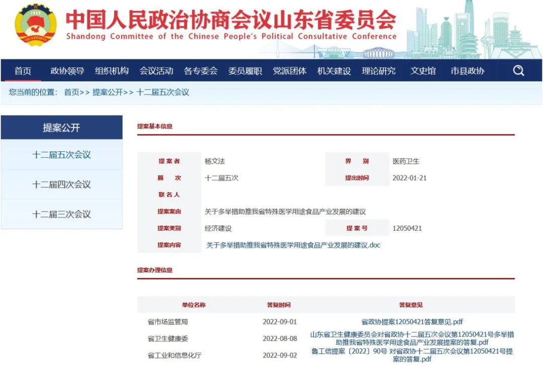 近日,山东省政协委员会发布了对省十二届五次会议第12050421号提案《关于多举措助推我省特殊医学用途食品产业发展的建议》的会办意见。     山东省市场监管局、卫健委、工信厅等相关单位分别给出了相关的答复意见:     省市场监管局详…